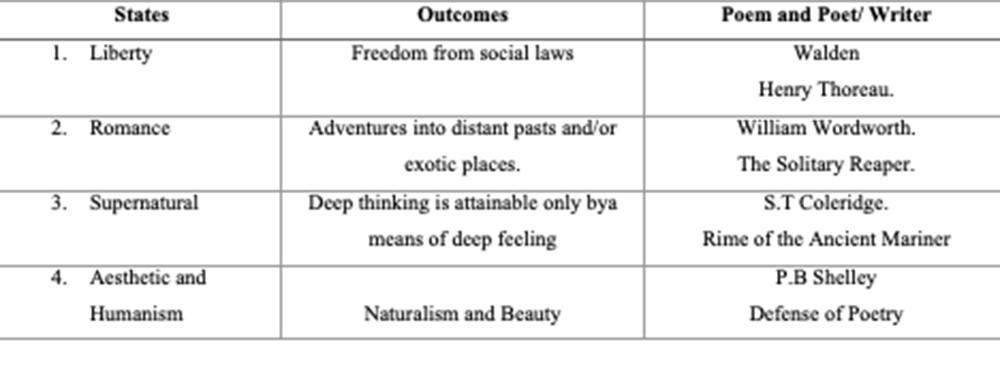 Table 2: Sates and Outcomes of Romanticism
